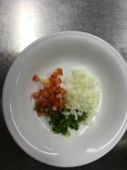 ![]() 青ピーマン・赤ピーマン・玉ねぎはみじん切りにする。