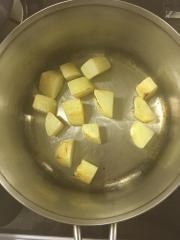 じゃがいもは皮をむいて一口大の角切りにし、水に漬けておく。
