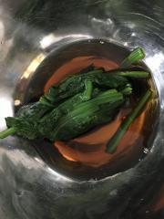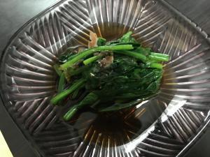 ![]() ほうれん草をボールやタッパーに入れ、めんつゆと水を加え混ぜる。