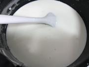 ![]() 鍋を火にかけ、少しずつ牛乳を加えて伸ばす。(ホワイトソースの要領) できれば沸騰させないようにしましょう。