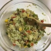 ![]() 熱いうちに、ご飯と混ぜ合わせる。