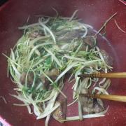 ![]() もやし、豆苗、調味料を加えて、強火でさっと炒める。