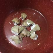 ![]() レバーは大きな血管を除いて、一口大に切る。流水で洗い、牛乳(分量外)に10分程度浸けて臭みをとる。