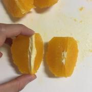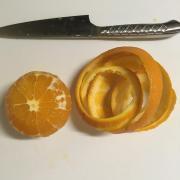 ![]() オレンジの皮をむく。 上下のヘタを切り落とした後、りんごの皮と同じ要領でくるくると剥いていく。