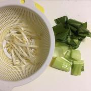 ![]() もやしは洗って水気を切り、チンゲンサイはざく切りにする。