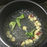 ![]() さつまいもを湯がき火が通れば、ブロッコリーも入れてさっと湯がく。