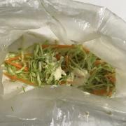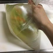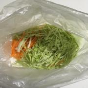 ![]() キャベツと人参はせん切りし、ポリ袋に入れて塩胡椒する。