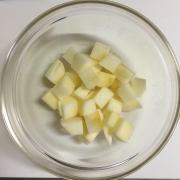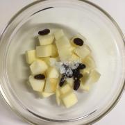 ![]() りんごは皮をむき、角切りする。