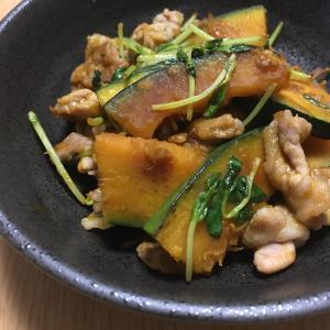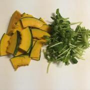 ![]() かぼちゃは薄切りし、豆苗はざく切りする。