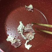 ![]() フライパンでごま油を熱し、豚肉を炒める。