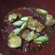 ![]() 合わせ調味料Aを加えたら、強めの中火で照りが出るまで絡める。
