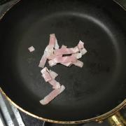 ![]() サラダ油をひいたフライパンでベーコンを炒める。