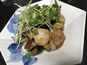 ![]() 茄子を一口大の乱切りにして、水を張ったボウルに五分着けてアク抜きをする。エリンギは薄切りにする。