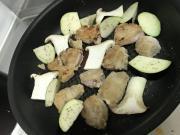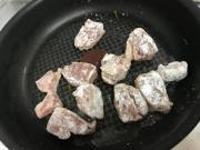 ![]() 中火で約五分焼いたら、一旦火を消して調味料(A)を入れてから弱火で火をつける。(火を消すのは油ハネ防止です)