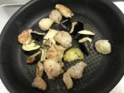 ![]() 皮がパリッとするまで焼いたら、裏返して水気をよく拭いた茄子とエリンギを入れて蓋をする。