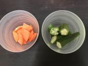 ![]() オクラはヘタを切って1/2の斜め切りに、人参はいちょう切りにする。もやしはサッと洗う。
