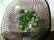 ![]() お湯をわかせて、オクラをサッとゆがき1cm幅に切る。