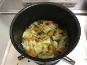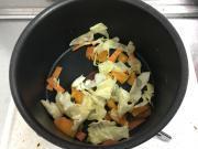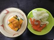 ![]() キャベツ、人参は短冊切りにし、カボチャは厚めの短冊切りにしてレンジで先に柔らかくする