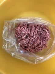 ![]() 調理用袋にひき肉をいれ、食塩を加えよく捏ねる