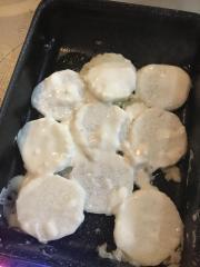 ![]() 弱火で熱したごま油に②を並べて、すき間を埋める程度に残ったAを垂らす(バラバラにならない程度でOK!)