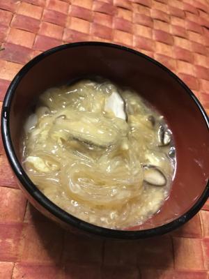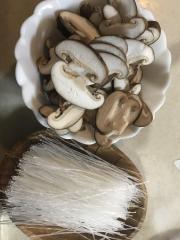 ![]() 椎茸は石づきを落として薄切りにする。春雨は長いものであれば食べやすい長さにカットする。卵は割りほぐしておく。