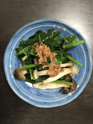 ![]() ほうれん草はしめじと同じくらいの長さにきり、しめじは軽く割いておく。