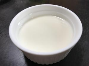 ムラなく冷えるようによく混ぜながら冷して、人肌より少し温かい位で器に分注する。ラップをしたら冷蔵庫で完全に固める