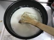 ![]() バニラエッセンスを少し加えて混ぜたら、小鍋が入る程度の器に氷水を張って冷やす。