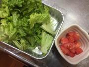 ![]() レタスは手で一口大にちぎる。 トマトは角切りにする。