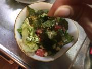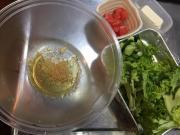 ![]() ボウルに中華だしの素、こしょう、にんにく、ごま油を加え、よく混ぜる。 レタス、きゅうり、トマト、豆腐を加えよく混ぜる。