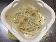 ![]() もやしは茹でて、ザルに上げ、水気をきる。