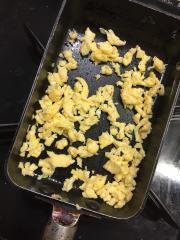 器に盛り、最後に炒り卵を盛り付ける。