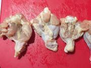 ![]() 手羽元の骨の部分に沿って、切り込みを入れる。