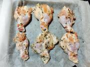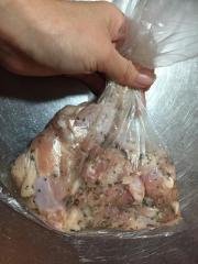 ![]() ビニール袋に塩、黒こしょう、バジル、レモン汁、オリーブ油、手羽元を加え、よく揉む。そのまま30分ほど漬け込む。