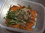 ![]() ボウルに人参、スプラウト、ツナ缶、クミンシード、レモン汁、オリーブ油、こしょうを加え、混ぜ合わせる。