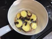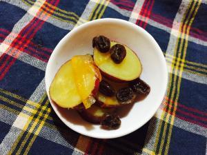 ![]() さつまいもがやわらかくなったら、レーズンを加え、汁気が少し残るまで煮る。 煮汁につけたまま粗熱を取る。