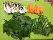 ![]() 小松菜は3cmのざく切り、 人参は3cm長さの短冊に切る。しめじはほぐす。
