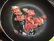 ![]() フライパンにサラダ油を加え、熱し、牛肉を炒める。