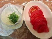 ![]() トマトは好みの大きさにカットする。 青しそは千切りにし、キッチンペーパーで包み、流水でもみ洗いする。
