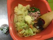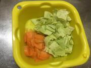 ![]() キャベツは2cm程度のざく切り、人参はいちょう切りにし、塩をする。しんなりしたら、水気を絞る。