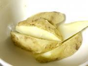 ![]() ジャガイモを耐熱皿に入れてラップをかけ、600Wの電子レンジで5分加熱する