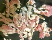 ![]() フライパンに油をしき、豚肩ロースに火が通るまで炒める