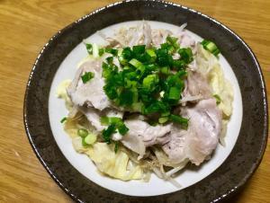 火が通ったら器に盛り付け、胡椒、葉ネギをトッピングし、上からポン酢をかける