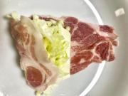 ![]() 豚肩ロース肉を広げて、【1】のキャベツとチーズを乗せて巻き、周りに薄力粉をふっておく