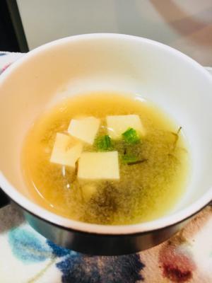 鍋にだし汁と豆腐、ネギをいれ火にかけて 沸いたら味噌を溶いてもずく酢を入れ混ぜ 火を止めお椀に盛る。