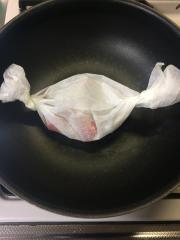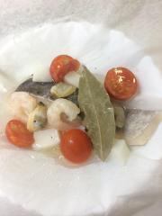![]() クッキングペーパーを40cmほど取り、魚とAをのせ、キャンディ状に包む。