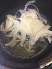 ![]() タマネギはスライスし、バターを溶かした鍋で炒める。