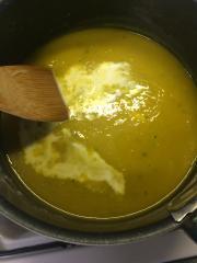 ![]() 2に1のかぼちゃ、水、コンソメを加えて少し煮る。