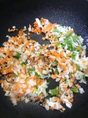 ![]() タマネギが茶色く透き通るまで炒める。
