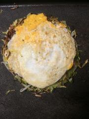 ![]() 卵が固まったらひっくり返し、生地の水分を飛ばす。